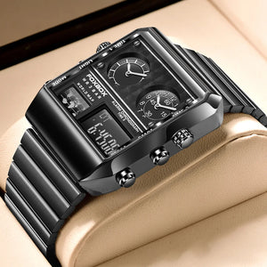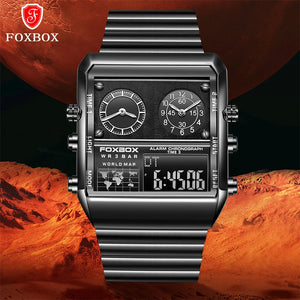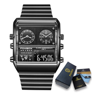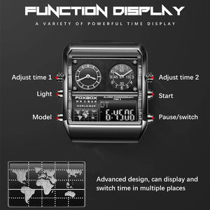 Elevate your wrist game with the FOXBOX Dual Display Square Watch—designed for those who demand style, function, and innovation in one sleek package.