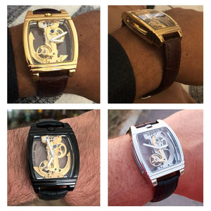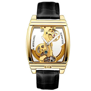 Elevate your style with the Transparent Turbillon Automatic Watch, a masterpiece of engineering and elegance. This timepiece combines modern sophistication with classic craftsmanship, showcasing a transparent dial that reveals the intricate movements of the tourbillon mechanism. Designed for those who appreciate precision and artistry, this watch is more than an accessory—it's a statement of your impeccable taste. Perfect for formal occasions or adding a touch of refinement to everyday wear, the Transparent Turbillon Automatic Watch is a blend of innovation and timeless beauty.